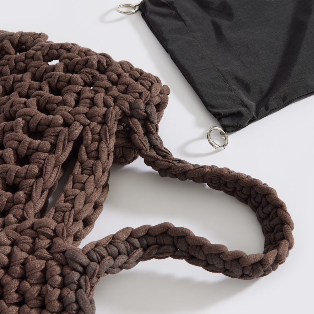 Our signature squashy yarn in new handbag and tote shapes.